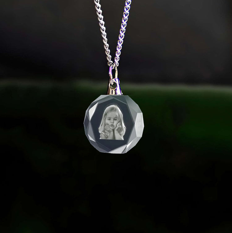 قلادة كريستالية دائرية بحواف منقوشة تضيف لمسة فنية راقية وأسلوبًا مميزًا لإطلالتك. النقش الدقيق بالليزر داخل الكريستال يبرز تفاصيلك الخاصة بوضوح وجمال، مما يجعل هذه القلادة قطعة فريدة تعكس ذوقك الرفيع وترافقك بأناقة في كل مناسبة.