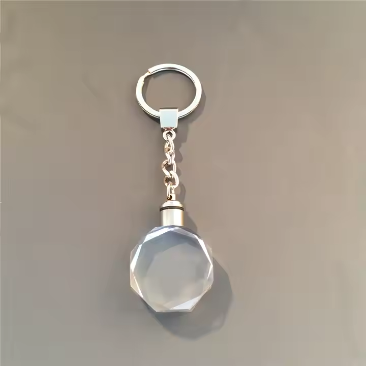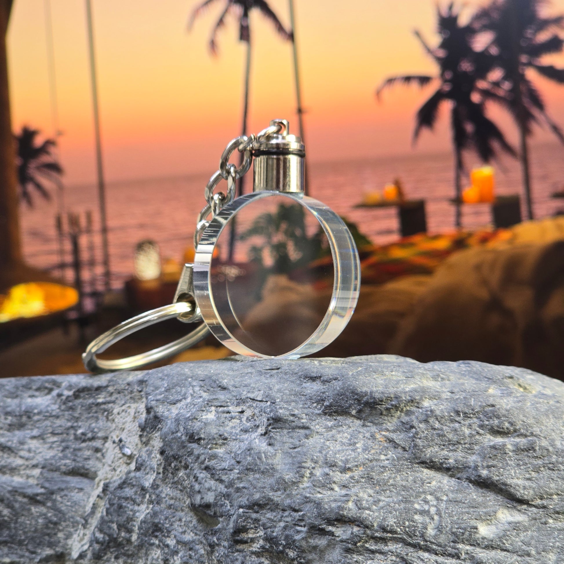 ميدالية مفاتيح كريستالية دائرية بتصميم أنيق وعصري، محفورة بالليزر داخل الكريستال بدقة لتجسد تفاصيلك الخاصة بشكل واضح وجميل. تضيف هذه الميدالية لمسة فريدة من الرقي لمفاتيحك اليومية، مما يجعلها هدية مثالية تعبر عن ذوقك الشخصي وترافقك في كل مكان بأناقة لا مثيل لها.