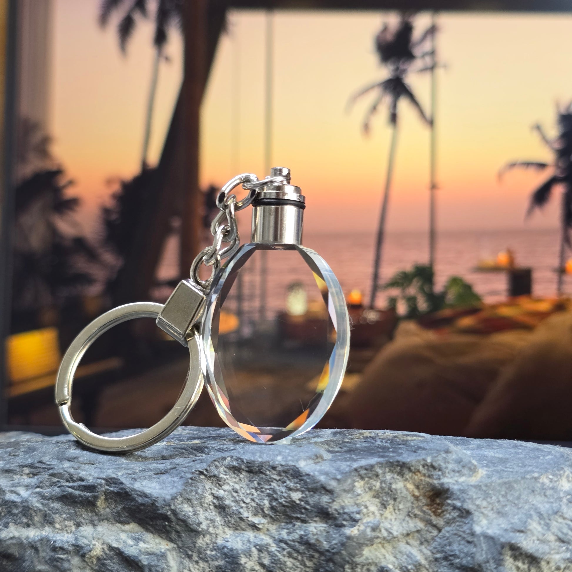 ميدالية مفاتيح كريستالية بتصميم دمعة أنيق، محفورة بالليزر بدقة داخل الكريستال لتبرز تفاصيل نقشك الخاص بوضوح وجمال. تضفي هذه الميدالية لمسة فريدة من الرقي والتميز على مفاتيحك، مما يجعلها هدية مثالية تعبر عن ذوقك الشخصي وترافقك في كل مكان بأسلوب راقٍ وجذاب.